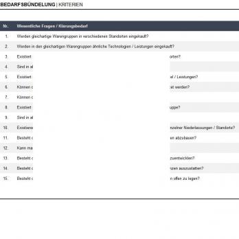 Checkliste mit 15 Kriterien, die Aufschluß über die Möglichkeiten zur Bedarfsbündelung geben
