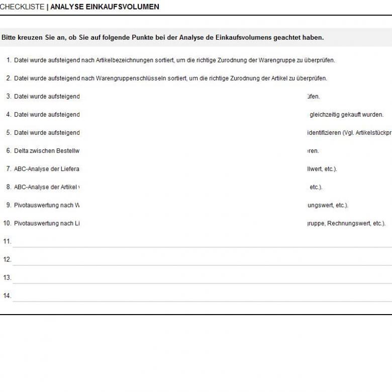 Checkliste für die Vorgehensweise bei der Analyse des Einkaufsvolumens