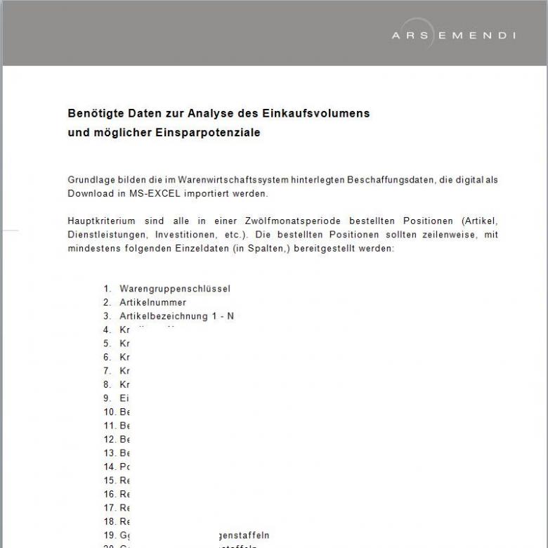 Checkliste für die benötigten Daten aus dem Warenwirtschaftssystem für die Analyse des Einkaufsvolumens