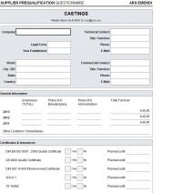 Individuelle Lieferantenselbstauskunft für GUSSTEILE, bestehend aus einem allgmeinen und einem warengruppenspezifischen Teil (ENGLISCH)