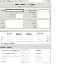 Individuelle Lieferantenselbstauskunft für LEITERPLATTEN, bestehend aus einem allgmeinen und einem warengruppenspezifischen Teil (ENGLISCH)