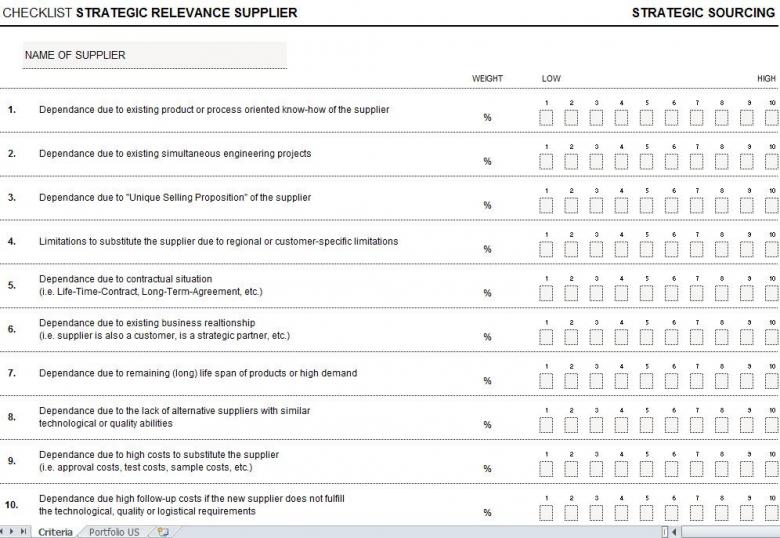 CHECKLISTE zur Abschätzung der strategischen Bedeutung eines Lieferanten - 10 Kriterien (ENGLISCH)
