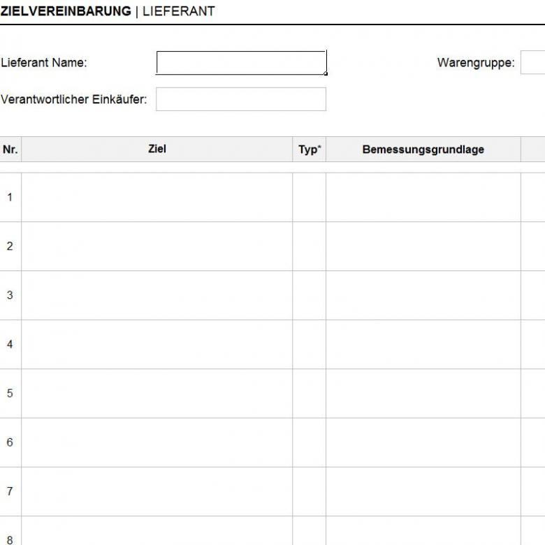 Vorlage für die Zielvereinbarung mit einem Lieferanten (DEUTSCH)