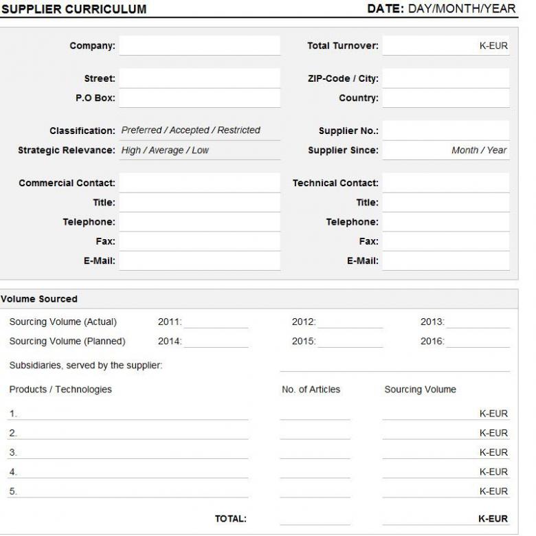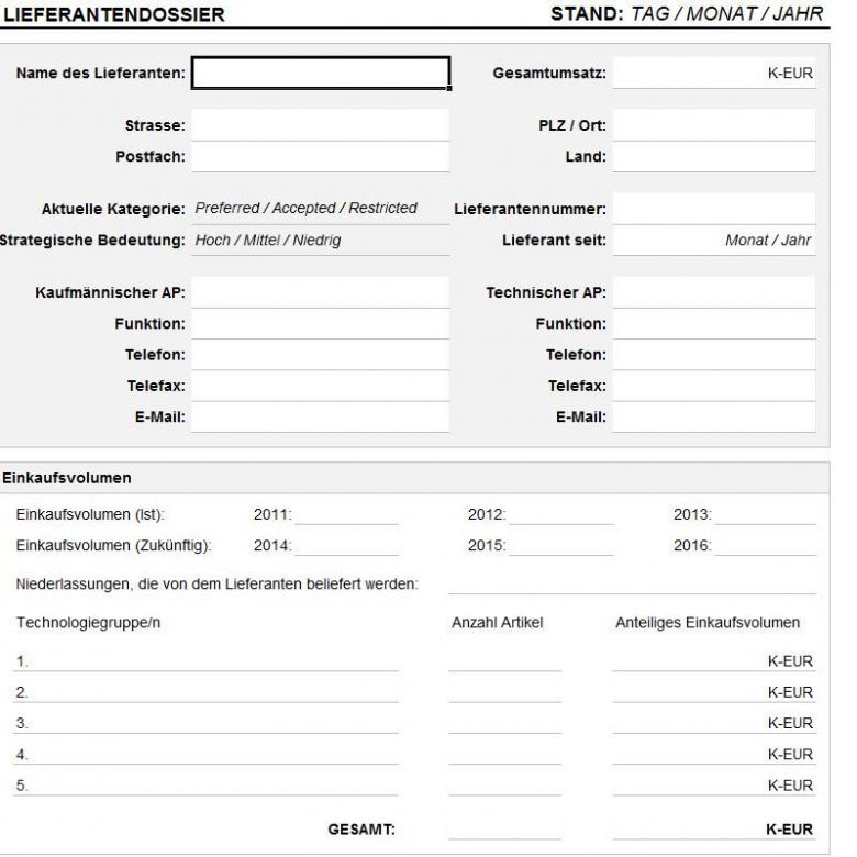 Sie sind hier: WISSENSDATENBANK EINKAUF » Lieferantenmanagement » Formblätter