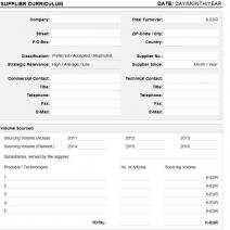 Lieferantendossier zur Erfassung der wesentlichen Eckdaten eines Lieferanten, inklusive Formular für die Zielvereinbarung (ENGLISCH)