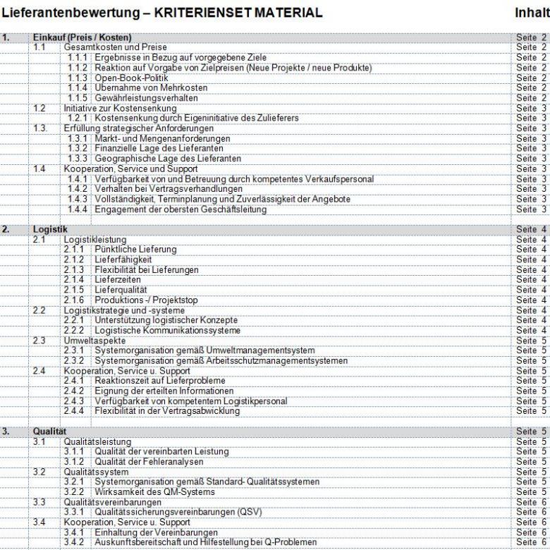 Kriterienset zur Beurteilung der Leistungen von Produktlieferanten - 49 gewichtete Kriterien (DEUTSCH)