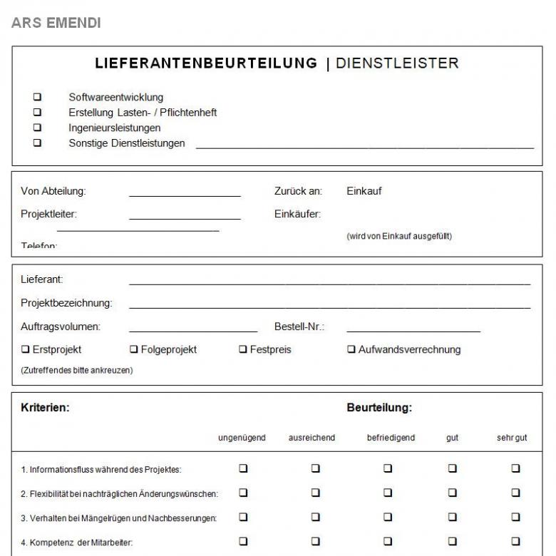 Vorlage zur Beurteilung der Leistungen von Dienstleistern