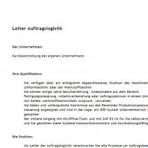 Musterstellenanzeige für einen Leiter Auftragslogistik