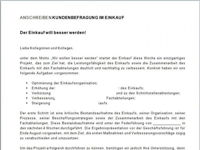 Anschreiben zur Durchführung einer Befragung über die Zufriedenheit mit den Leistungen und der Leistungsfähigkeit des Einkaufs