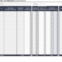 Vorlagen für einen detaillierten Plan-Ist Vergleich der unterschiedlichen Kostenarten in einem Arbeitspaket sowie der Gesamtkosten des Projektes, unterteilt nach Arbeitspaketen.