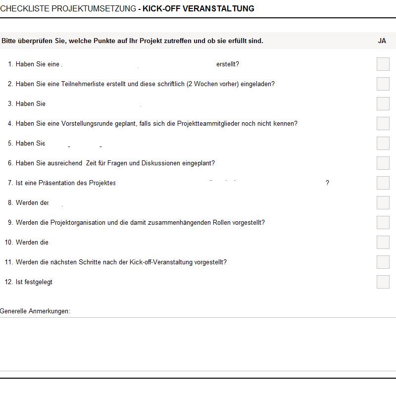 Checkliste für eine Kick-Off Veranstaltung eines Projekte