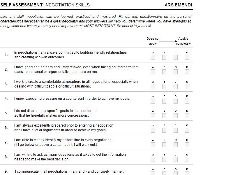 Selbstassessment des eigenen Verhandlungsgeschicks, inklusive Auswertungsbogen