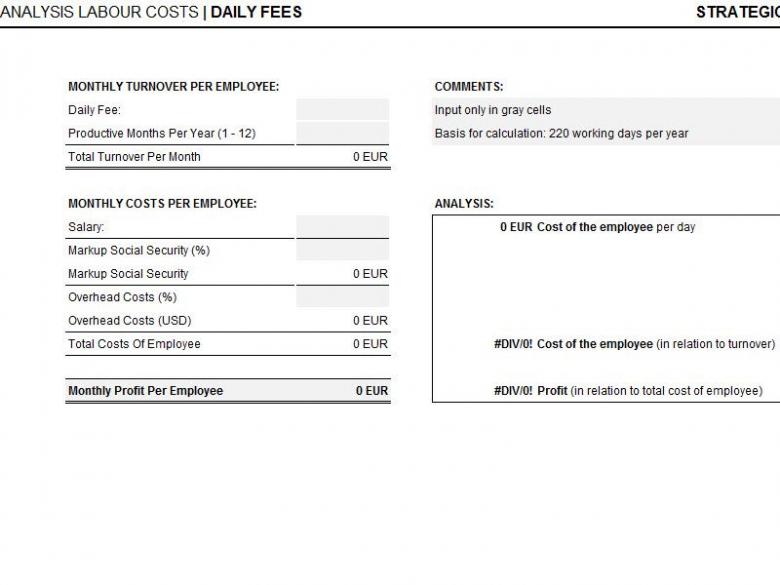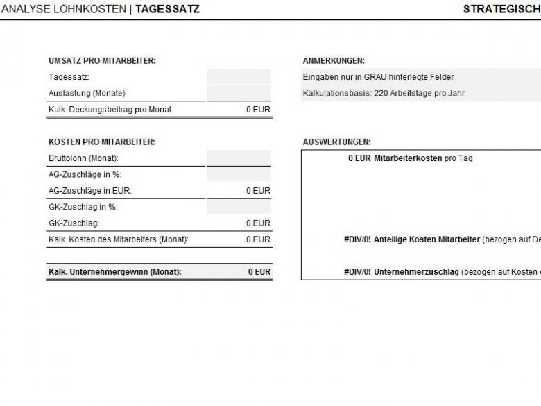 Kalkulationstool zur Analyse des Gewinns eines Dienstleisters bei der Verrechnung seiner Mitarbeiterkosten - Für Stundenlohnverrechnung oder Verrechnung über Tagessätze