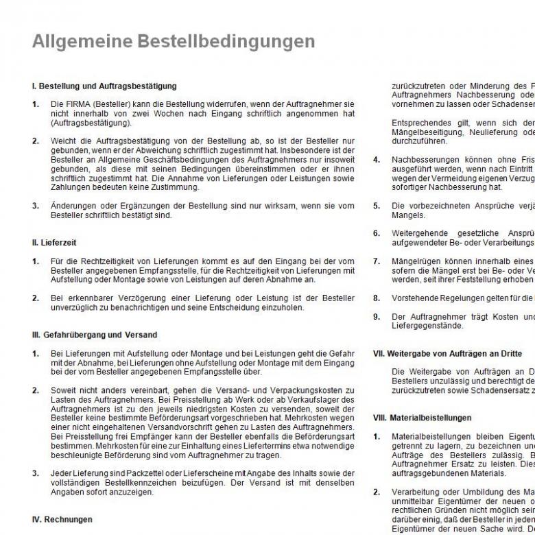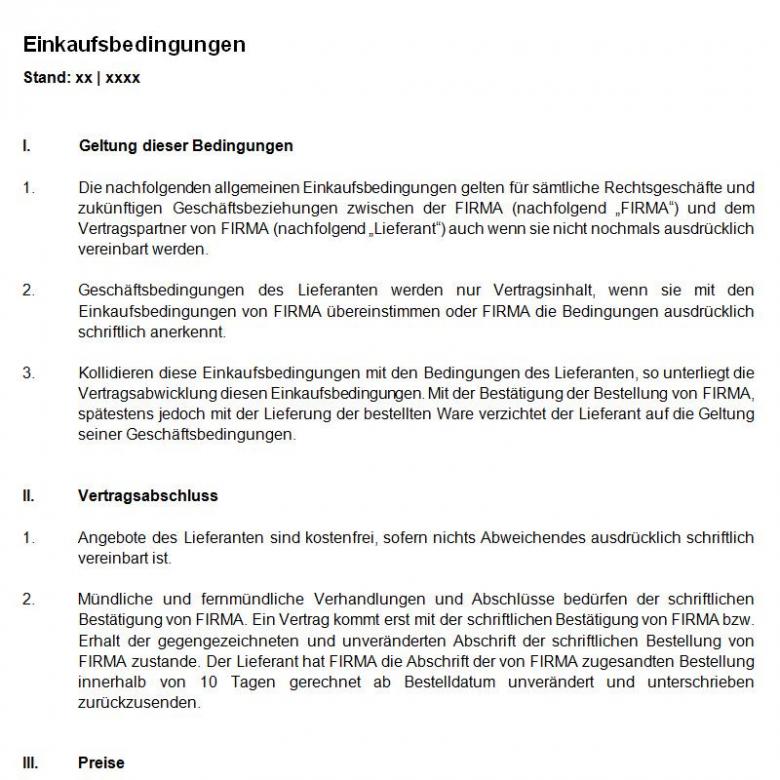 Sie sind hier: WISSENSDATENBANK EINKAUF » Vertragsvorlagen » Einkaufsbedingungen