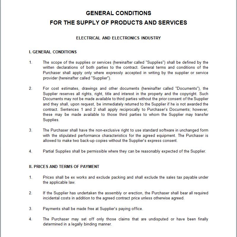 Muster für umfangreiche Lieferbedingungen in der Elektro- und Elektronikindustrie (ENGLISCH)