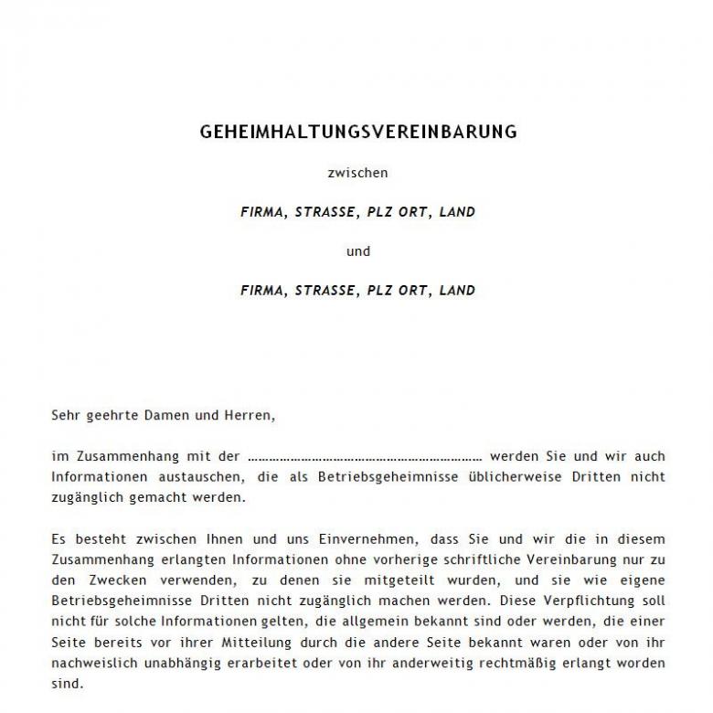 Sie sind hier: WISSENSDATENBANK EINKAUF » Vertragsvorlagen » Geheimhaltung