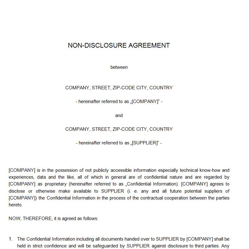 Umfangreiche und sehr detaillierte Geheimhaltungsvereinbarung mit Lieferanten